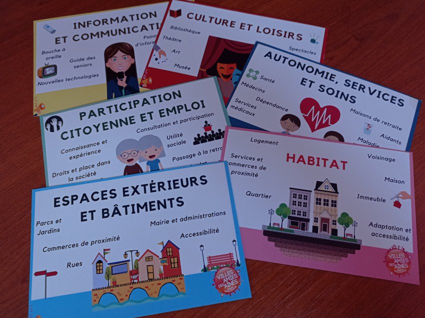 Cette rencontre se veut ludique et conviviale pour échanger ensemble autour de plusieurs thématiques dont : les espaces extérieurs et les bâtiments ; la culture et les loisirs ; l'autonomie, les services et les soins ; l'information et la communication ; l'habitat ; les transports et la mobilité ; le lien social et la solidarité ; la participation citoyenne et l'emploi.