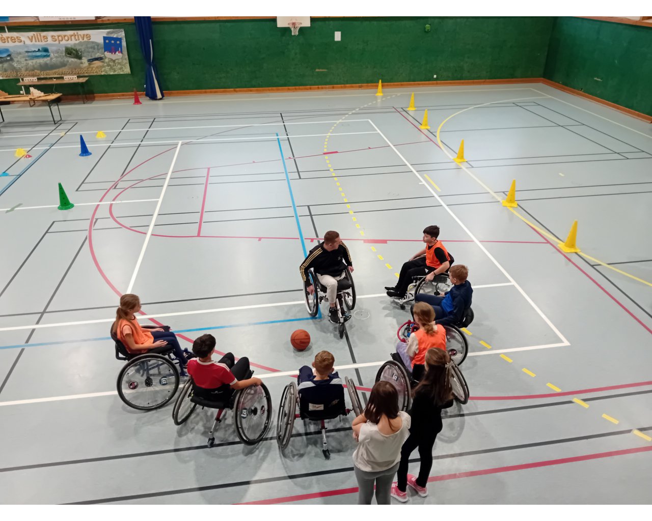 Vendredi 12 juillet, s'est déroulée une action de sensibilisation en faveur des 6 classes de 6ème, concernant le handisport,à la salle polyvalente de Bruyères.