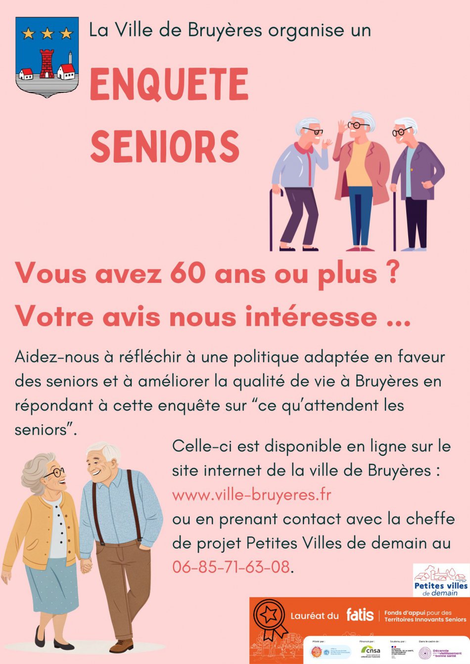 Si vous avez 60 ans ou plus, cette enquête s'adresse à vous : votre avis est précieux pour construire ensemble les actions de demain.