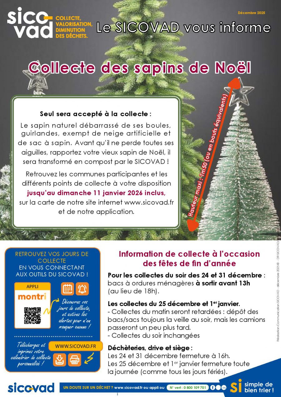info mensuelle SICOVAD / DECEMBRE 2025 / COLLECTE SAPINS